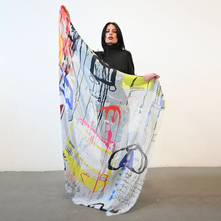 The 'Grand Carré' Scarf by Isabelle Gougenheim is a large square scarf made of a soft and luxurious silk/modal fabric.